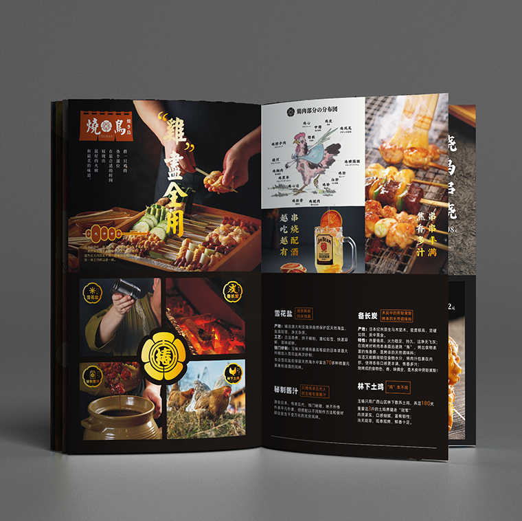 工作內(nèi)容:日本料理燒鳥(niǎo)居酒屋菜譜規(guī)劃,日本料理菜譜編排設(shè)計(jì),日本料理燒鳥(niǎo)菜品文案話術(shù)撰寫(xiě),燒鳥(niǎo)料理居酒屋菜譜印刷裝訂。