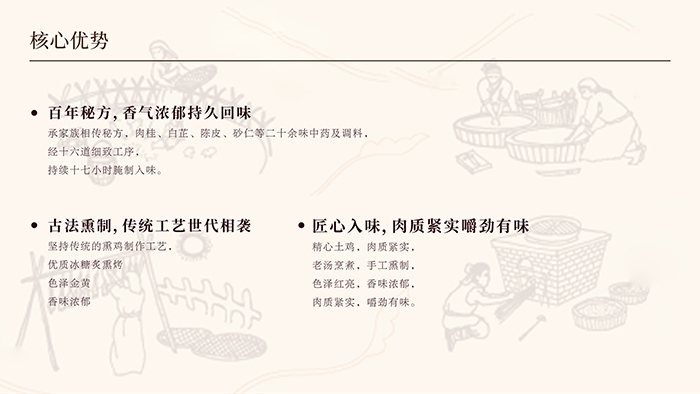 2、作為一個(gè)傳承了3代的熏雞品牌,我們?cè)撊绾螌⑵放频膬?nèi)涵展現(xiàn)出來(lái)?
