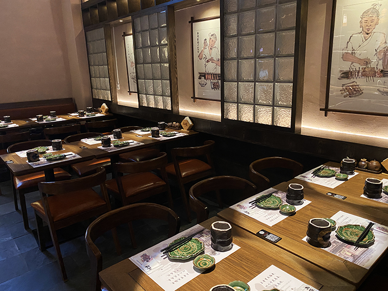 如:品深餐飲全案策劃設計的玉椿燒鳥居酒屋,設計師通過國畫手繪小品的形式展示燒鳥的制作過程,巧妙的結合在形象墻上,消費者在享受美食的同時,也理解了燒鳥的知識從而記住了玉椿燒鳥品牌。