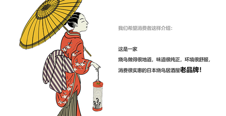 8、我們最終確定明確的定位表述就是:地道純正的日本燒鳥居酒屋,實(shí)惠價(jià)格沒有消費(fèi)壓力。我們希望消費(fèi)者這樣推介我們:這是一家日本料理中燒鳥做得很地道,刺身、壽司味道也很好,環(huán)境很日式很舒服,消費(fèi)很實(shí)惠的日本燒鳥居酒屋老品牌!