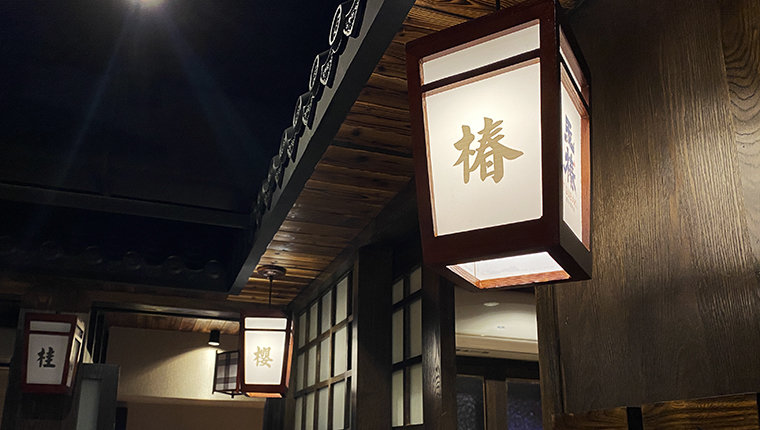 玉椿的門頭,使用京都古建筑的山墻造型,中間裝飾“