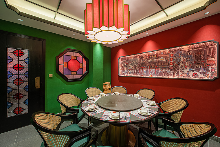 主色調(diào),我們設計創(chuàng)作了三大主色調(diào)。復古紅、香港綠、紫檀黑